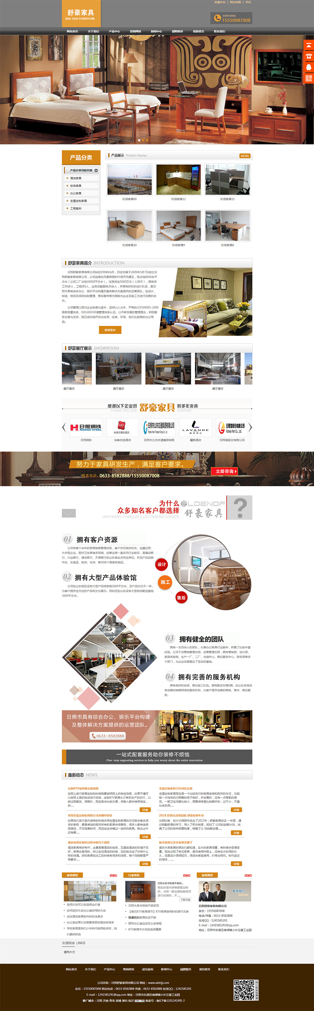 日照舒豪家具有限公司始創(chuàng)1998年6月,歷經(jīng)發(fā)展于2009年5月7日成立日照舒豪家具有限公司,公司座落在風(fēng)景秀麗的竹洞天風(fēng)景區(qū),現(xiàn)占地8000余平方米(公司二廠占地30000平方米)。注冊資金5000萬元(人民幣),員工90多人,工程師5人,業(yè)務(wù)后勤服務(wù)20余人,并好的設(shè)計(jì)隊(duì)伍,是日照市具有綜合辦公、娛樂平臺構(gòu)建及整體解決方案提供的運(yùn)營團(tuán)隊(duì)。在設(shè)計(jì)、制造、物流及項(xiàng)目控制管理、售后服務(wù)等方面能與業(yè)主及施工方進(jìn)行深度的合作。